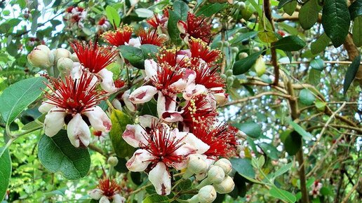 Я люблю фейхоа уже давненько. Ну, лет 10. Ем. Больше никому в семье не нравится. Мне кажется, что это из-за изменяющегося при его измельчении цвета. Я к нему вообще утилитарно относилась: купила фейхоа, вымыла, измолотила в блендере и ем. А сегодня меня угораздило почитать о нем. И оччень интересная история получается. Я то ела его первый раз по рекомендации эндокринолога. А его вообще-то даже и заготавливают кое где ведрами!!! Ну, во-первых, нашла в сети, как оно растет. Я знала, что в Краснодаре, на Кавказе, в Крыму, Азербайджане оно растет...