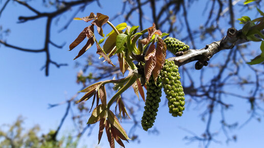 Как цветет грецкий орех. Самоопыление. How walnuts bloom. Self-pollination.