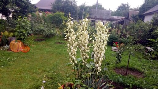 У меня зацвела юкка. Хочу рассказать о ней и еще о 4-х высоких цветах, которые расцвели в нашем саду