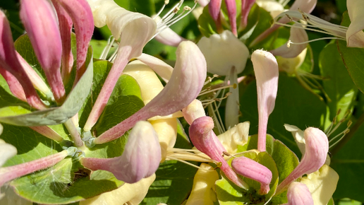 Жимолость каприфоль - когда цветет, ее аромат с ног сбивает. Особенно сильно пахнет вечером. И лично мне ни разу не встречался человек, который бы этот запах раскритиковал. Он такой, нежный и не резкий, и при этом насыщенный и вязкий. Да и вид каприфоли во время цветения очень хорош. И без цветения хорош. Сразу после, этот вьющийся кустарник, начинает отращивать длинные побеги, взбирается на опору, заплетает все свободное пространство. На месте цветов весьма интересной формы формируются красные ягодки, которые тоже декоративны...
