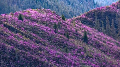 Пока мы тут сидим, помечтаем! Расскажу Вам немного про Алтай.  Мы должны были ехать и попасть на цветение Маральника в горах Алтая. «Весной, ближе к маю, горы Алтая полностью окрашиваются лилово-розовым цветом. Это цветет рододендрон Ледебура, который чаще называют маральником или багульником, хотя к настоящему багульнику он никакого отношения не имеет. У местных есть такая примета: зацвел маральник – весна окончательно пришла на Алтай.8 Научное название кустарника составлено из греческих слов "родон" и "дендрон" — "роза" и "дерево"...