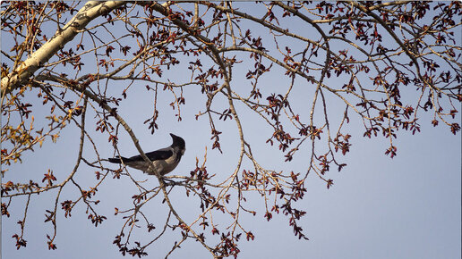 Ворона на цветущей осине...