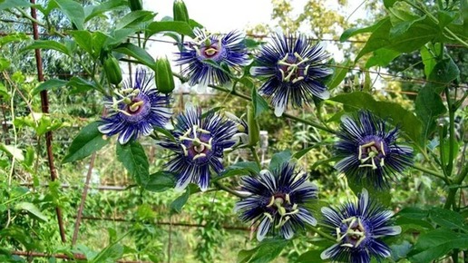 Пассифлора хороша как ампельное растение, она используется для вертикального озеленения, хорошо растет и цветет в грунте зимнего сада. Наибольшее распространение в комнатной культуре получила пассифлора голубая. Это сильная лиана, которая может занять все свободное пространство, если ее регулярно не обрезать. Листья пальчато-рассеченные, до 10 см шириной, сизовато-зеленые. Цветки крупные, до 8 см диаметром, одиночные, пазушные, пятилопастной звездчатой формы. Цветок необычный: лепестки белые или кремовые, на их фоне четко выделяются голубые тычинки, окружающие пестик оригинального строения...