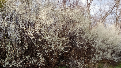 Приветствую читателей и подписчиков моего канала! Зацвел дикий терновник. Цветет терновник рано. Еще лес стоит черный, а островки терновника уже покрываются белым покрывалом. Цвет представляет собой маленький цветок с белыми лепестками. Цветет и плодоносит терновник ежегодно и обильно. Плоды созревают в начале осени. Созревшие плоды приобретают черный цвет с синим налетом. На вкус они очень кислые, и только после заморозков, приобретают приемлемый вкус. Плоды держатся на ветках всю зиму, Ими подкармливаются птицы...