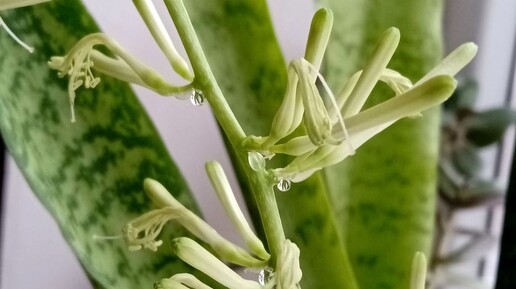 Друзья, а вы видели как цветет "тещин язык"? Нет? Я покажу. В моем спортзале он цветет постоянно. Щучий хвост, змеиная кожа, тещин язык... Как его только не называют. Верное название - Сансевие́рия