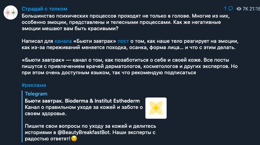 Преимущества рекламы в Telegram На что обратить внимание перед рекламным размещением Хочу хороший контентИнтересные и полезные посты для вовлечения и лояльностиСтатьи, инструкции, гайды, кейсы, визуалы, графика – о вас и для вашей аудитории Недостатки и особенности Телеграм Как выбрать канал для продвижения В Telegram есть две метрики: неуникальные просмотры и подписчики. Дополнительная аналитика доступна на специальных сервисах. Среди маркетологов популярен TGstat, о котором мы уже говорили выше...