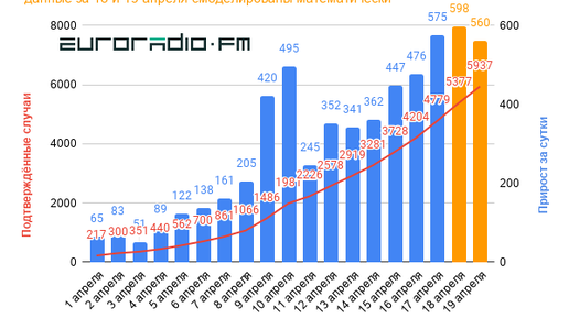 Второй день подряд Минздрав скрывает часть статистики о распространении коронавирусной инфекции в Беларуси. Точное количество подтвержденных случаев COVID-19 не сообщается. Но 19 апреля можно с уверенностью сказать, что их число превысило 5 тысяч. 17 апреля — последний день, когда чиновники от здравоохранения сообщили о количестве подтвержденных случаев COVID-19. Тогда их было 4779. За последние 24 часа в больницы поступило 292 новых пациента с коронавирусной инфекцией, так как сообщается, что 36 пациентов за день были выписаны, а количество занятых коек увеличилось на 256...