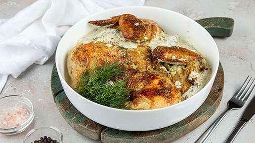 Цыпленок под соусом — это не только вкусное, но и полезное блюдо, которое может украсить как повседневный, так и праздничный стол. Мясо цыпленка, богатое белком и аминокислотами, легко усваивается организмом и является отличным источником энергии. Соус, в свою очередь, придает блюду сочность и аромат. Для приготовления вам потребуется: тушка цыпленка, хмели-сунели (1 ч. л.), чеснок (3 зубчика), сливочное масло (60 г), сметана или сливки (400 г), мука (1–2 ст. л.), специи (соль, перец), зелень. Цыпленка разрежьте по линии грудины...