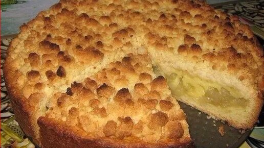 Это удивительно вкусный пирог с яблоками, оригинальный, интересный и поверьте им можно угощать гостей за праздничным столом вместо торта. Яблочный пирог по-царски Делается он из песочного теста с нежной яблочной начинкой и покрытый посыпкой. Все этапы приготовления простые, но по времени готовить конечно дольше, чем обычную яблочную шарлотку. Зато поверьте, результат превосходит все ожидания) Понадобится для теста: Для начинки: Заливка на начинку: Для посыпки: Как делается яблочный пирог с посыпкой Все основные составляющие делаем по отдельности...