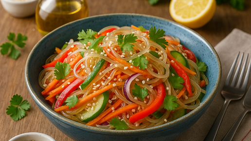 👋 Привет, друзья! Сегодня на канале «Рецепты от Дарики» хочу поделиться с вами очень вкусным и полезным блюдом — салатом с фунчозой и овощами. Этот салат покоряет своей простотой, лёгкостью и в то же время насыщенным вкусом. Прозрачная лапша в сочетании со свежими овощами и ароматной заправкой превращается в яркое угощение, которое можно подать как на повседневный стол, так и на праздник. Фунчоза — это стеклянная лапша, сделанная из крахмала (обычно бобового или картофельного). Она сама по себе...