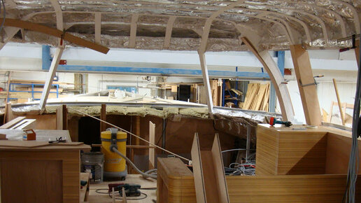 После покраски и нанесения теплоизоляции, собственно и начинается сборка яхты. Сначала примеряется и устанавливается основное оборудование, монтируются трубопроводы и проводки. Параллельно по мере необходимости, устанавливаются элементы интерьера, с заранее подготовленными местами и вырезами для монтажа оборудования. После подгонки и уточнения деталей, часть интерьера снимается для окончательной лакировки и установки фурнитуры, часть элементов доводится на месте, все законченные мебельные элементы тщательно упаковываются для защиты от повреждений...