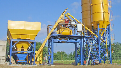 Каждый, кто заказывал бетон с завода, знает, что его производят примерно вот на таких небольших производственных установках, называемых РБУ: РБУ – это растворобетонный узел. Еще его иногда называют БСУ (бетоносмесительная установка). Слева – это бункер для инертных материалов. Иногда один (что хуже). Но, как правило, их два и больше (для песка и щебня). Ведь многие заказывают раствор (смесь без щебня). Из них материалы дозировано по наклонному контейнеру попадают в блок дозаторов бетоносмесителя...