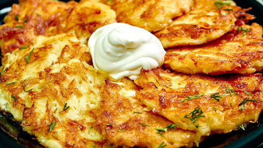 Драники — это оладьи, которые готовят из тёртого картофеля, лука, специй и иногда яиц.
