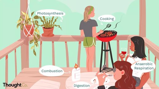 Тысячи реакций происходят вокруг тебя Химия происходит в мире вокруг вас, а не только в лаборатории. Материя взаимодействует с образованием новых продуктов в процессе, называемом химической реакцией или химическим изменением . Каждый раз, когда вы готовите или убираете, это химия в действии. Ваше тело живет и растет благодаря химическим реакциям. Есть реакции, когда вы принимаете лекарства, зажигаете спичку и дышите. Эти примеры химических реакций из повседневной жизни представляют собой небольшую выборку из сотен тысяч реакций, которые вы испытываете в течение дня...