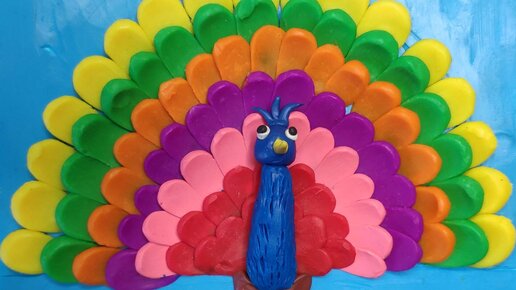 Аппликация из пластилина "Павлин". Пошаговая инструкция для детей с фото.
