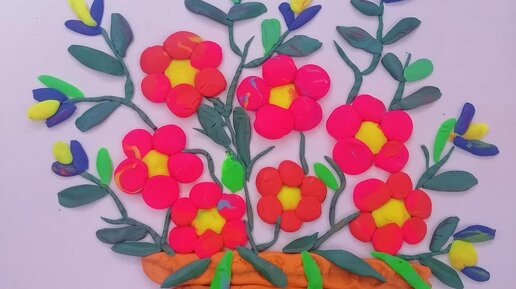 Всем привет! Сегодня я покажу Вам, как быстро и просто сделать картину из пластилина. Вам понадобится: Лист бумаги, пластилин и хорошее настроение. Берем лист бумаги. Скатываем колбаски для вазы. Выкладываем в форме вазы. Приминаем. Делаем рельеф карандашем или фломастером. Делаем шарики для серединок цветков. Распределяем из на картине, где будут цветы. Делаем шарики для лепестков. Делаем цветы. Сделали все цветы. Скатываем колбаски для стволов и листьев, делаем их...
