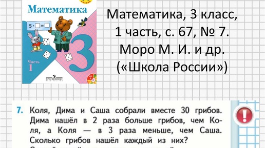Решаем задачу: математика, 3 класс, «Школа России» (Моро), часть 1, с. 67, № 7