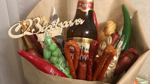 Сегодня делюсь с вами замечательной идеей, как удивить своего парня, мужа, брата или друга))) По своему опыту скажу, я делала такие букеты на 23 февраля, и все были в восторге! А некоторые дамочки из окружения не прочь были бы получить такой презент, вместо тюльпанов на 8 марта)) Этот замечательный подарок, который запомнится надолго) Ведь современные мужчины тоже любят фотографироваться и выкладывать фото в соц.сети) и уж поверьте, им будет чем похвалиться)) Для букета нам понадобится: 1. Бутылка напитка, который предпочитает ваш мужчина, 2...
