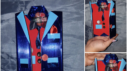 Как сделать необычную открытку на 23 февраля в виде пиджака и рубашки