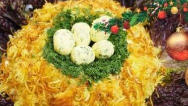 Простая рекомендация для праздничного стола, салат «Гнездо глухаря». Быстро, просто и вкусно