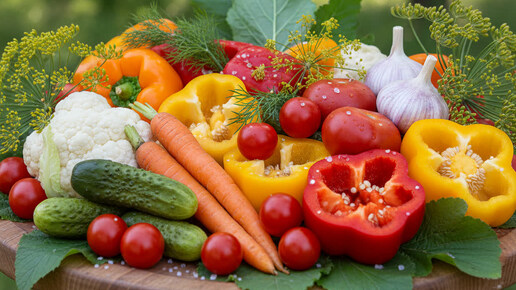 Здравствуйте, уважаемые хозяюшки и дачники! Вот и настал тот самый момент, когда грядки щедро отдают нам свои плоды, а кухня напоминает филиал овощного рынка. Помидоры, огурцы, переливы всех цветов радуги болгарского перца… Руки так и тянутся закатать это изобилие в банки, чтобы холодными зимними вечерами наслаждаться вкусом и ароматом лета. Но что делать, если классические маринады и соления уже немного поднадоели? Правильно — готовить салаты! Это не просто закуска, а готовое блюдо, которое можно подать к картошечке, мясу, рыбе или просто намазать на хлеб...