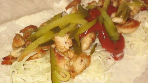 Основная проблема здесь связана с правильным заворачиванием блюда. Что взять? Что делать дальше? Куриное филе нарезаем ломтиками или полосками. Затем нужно слегка сбрызнуть его маслом и добавить приправы. Даём настояться минуты три-четыре и обжариваем до хрустящей корочки 7-10 минут. Салат и огурцы нарезаем соломкой, помидоры — полукольцами. Готовим соус: смешиваем пару ложек майонеза и сметаны, добавляем пропущенные через чеснокодавилку пару зубчиков чеснока, приправляем солью и перцем по вкусу...