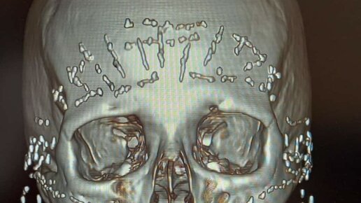 Сначала я не поняла, что на этом снимке. Его опубликовала моя читательница Ольга, цитирую: «А это немножко жути от знакомой врача КТ)) Пациентка пришла в больницу с жалобами на то, что "лицо поплыло", и нет чувствительности на лице вообще! Из анамнеза - 10 лет безостановочно колола себе "уколы красоты", ботокс, филлеры... И вот он результат... Неврологи разводят руками, как помочь в такой ситуации не знают...» Снимок выглядит вот так: