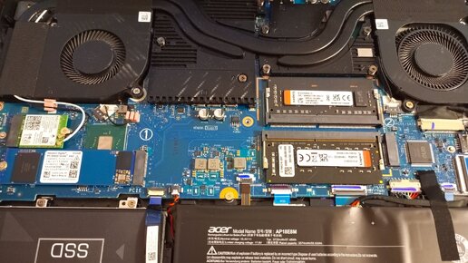 Продолжаем апгрейды и всяческие прокачки ноутбука Acer Nitro 5 AN515-57. Хоть в нем и есть уже 16 ГБ ОЗУ, но почему бы не сделать 32ГБ? Разбираем ноутбук, выкручиваем нижние винты, отщелкиваем защелки и снимаем нижнюю крышку В ноутбуке с завода установлены 2 планки DDR4 ADATA по 8ГБ, в итоге 16 ГБ У нас имеются 2 планки по 16ГБ от Kingston, единственное - различаются по вольтажу (одна 1.2 вольта, а вторая 1.35 вольт). Это никак не повлияет на производительность или стабильность. Снимаем ADATA с материнской платы...