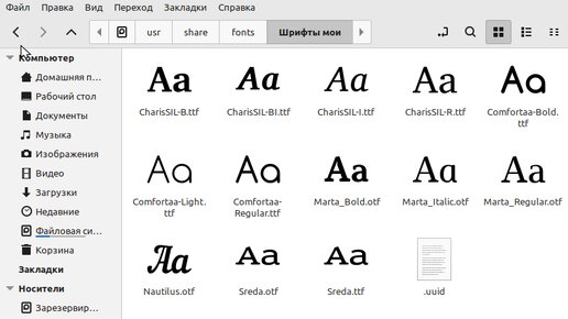 Для работы в GIMP не достаточно шрифтов, которые есть в системе. 1. Скачиваю в интернете понравившиеся шрифты в формате otf, ttf. Может можно и другие, но у меня установлены эти. 2. Открываю "Компьютер" -> "Файловая система" -> Папка "usr" 3. Папка "share" 4...