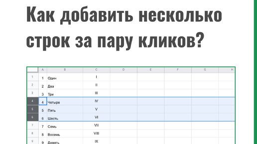 Как добавить сразу несколько новых строк в нужное место в таблице? Давайте рассмотрим пример, по скриншотам выше. Задача: добавить 3 новых строки между строками 3 и 4. Решение: Выделяем 3 строки, начиная ПОД строкой 3. Выделять необходимо строки целиком, а не ячейки...