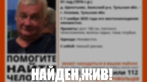 В Тульской области найден живым 51-летний Дмитрий Кузин, пропавший в деревне Щепотьево Заокского района. Местонахождение мужчины было неизвестно с 7 ноября 2025 года.
