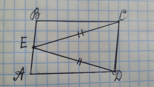 В параллелограмме ABCD точка E - середина стороны АВ. Известно, что ЕС=ЕD. Докажите, что данный параллелограмм - прямоугольник. Доказательство: Если ЕС=ЕD, то ∆CЕD-равнобедренный. Через точку Е проведём прямую ЕМ, параллельную ВС и АD. Она же по свойству равнобедренного треугольника и биссектриса, и высота. Значит, высота ЕМ перпендикулярна СD. Отсюда следует, что угол С - прямой. Вывод: АВСD-прямоугольник. Доказала вот так, а потом заглянула в интернет посмотреть, как решают другие. Интересно же...