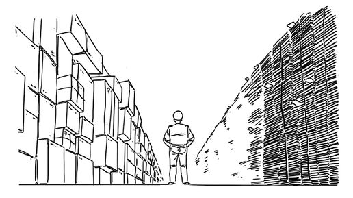 На почте ты можешь работать в двух разных структурах: либо в отделении заниматься приёмом/выдачей корреспонденции, либо работать в больших пересылочных пунктах, которых в Москве, кажется, четыре — туда посылки прибывают из разных стран и городов, их сортируют и распределяют по направлениям, там же сидит таможня, которая досматривает товары. Там, в общем-то, сердце почты. Такой пункт — это много этажей разных цехов и много-много посылок, писем, открыток. Как таковых у нас нет даже складов. Представьте себе цех — огромное помещение размером с футбольное поле...