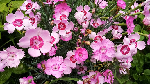 Гвоздик очень много, в этой статье я расскажу о тех, которые вырастила сама. Самые популярные, наверное, это гвоздики-травянки и перистые. Невысокие многолетние цветочки могут цвести почти все лето с июня по август включительно. Сажать эти эти цветы на рассаду можно уже в конце января, но лучше в феврале-марте. Я в позапрошлом году сажала в январе, зацвели в год посадки ближе к августу. При выборе сроков посадки учитывайте, что нехватка света отрицательно сказывается на развитии рассады - гвоздики вытягиваются, рассада тоненькая как ниточка и, соответственно, слабая...
