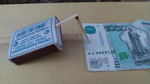 Добрый день, уважаемые гости и постоянные мои читатели! Я давно не публиковал ни интересных фокусов, ни головоломок, поэтому сегодня хочу исправиться... Описанная здесь загадка очень проста, но одновременно с этим, до ее решения дойти не так-то просто. Ко мне в гости приехали родственники и один из них показал мне фокус — брат положил на стол купюру номиналом в 1000 р, поставил на нее спичку, как показано ниже на фото и говорит: нужно вытянуть купюру так, чтобы спички не упали, при этом руками спичек касаться нельзя и нельзя использовать посторонние предметы...