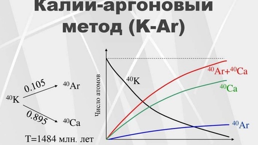 Кроме уран - свинцового метода популярен калий - аргоновый. Очень любимый у нас в стране в советский период. Основан на свойстве изотопа калия ⁴⁰K распадаться либо на кальций ⁴⁰Ca, либо на аргон ⁴⁰Ar ...