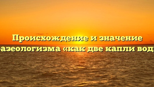 Происхождение и значение фразеологизма «как две капли воды» Об очень похожих людях или явлениях принято говорить, что они похожи «как две капли воды». Данное выражение является фразеологизмом. Интересно узнать происхождение и значение фразеологизма «как две капли воды», а также проследить, в каком контексте он чаще всего употребляется. Происхождение выражения Наши предки были довольно наблюдательными людьми. Они подмечали всё, особенно то, что касалось явлений природы. В результате многих наблюдений они начали говорить о похожих явлениях как о двух каплях воды...