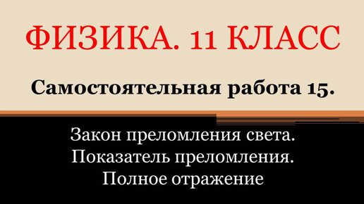 Глава 3. Оптика Самостоятельная работа 15. Закон преломления света. Показатель преломления. Полное отражение Вариант 1-2: Вариант 3-4: