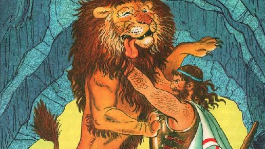 Первый подвиг. Немейский лев Первым поручением «слабого, трусливого Эврисфея» было убийство немейского льва. Это был невероятных размеров хищник, «порожденный Тифоном и Ехидной», который наводил страх на жителей города Немеи. Геракл послушно отправился на поиски кровожадного льва. Он забрался высоко в горы и долго бродил по лесистым склонам и ущельям, пытаясь отыскать логово этого чудовища. Наконец он достиг цели своего путешествия – это была большая пещера с двумя выходами, один из которых Геракл завалил обломками скалы, а сам «стал ждать льва, скрывшись за камнями»...