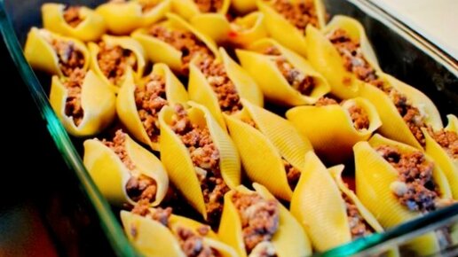 Оригинальные большие макароны ракушки, фаршированные фаршем