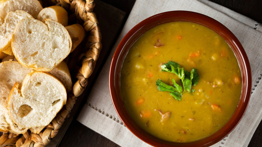 Гороховый суп — блюдо, которое готовят в России уже не одно десятилетие. Этот ароматный и сытный суп отлично подходит для долгих зимних вечеров. Возьмите 300 граммов мяса на кости и поставьте вариться в 2 литрах воды. После закипания снимите пену, добавьте 1 чайную ложку соли и варите 60 минут, чтобы бульон стал наваристым. Промойте 200 граммов колотого гороха и высыпьте в кастрюлю. Варите еще 40 минут — за это время он размягчится и начнет развариваться. Очистите 2 картофелины, нарежьте их кубиками и положите в суп...