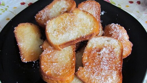 Всем привет, дорогие друзья, сегодня хочу с вами поделиться интересной идеей в виде сладких гренок. Это один из самых быстрых рецептов, который еще и очень даже вкусный! Нам всего лишь понадобиться: 1. Батон - половина