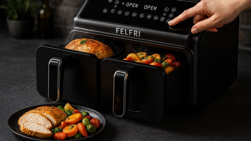 👉 Сразу посмотреть подходящую технику: аэрогриль FELFRI на витрине. Подходит: тем, кто хочет диетичное мясо без лишнего масла; готовит ужин на семью; ценит скорость и чистую кухню.