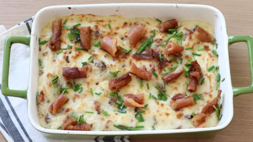 Это блюдо станет прекрасным ужином для всей семьи: нежное, ароматное и очень сытное. Ингредиенты: Картофель — 8-9 шт. среднего размера Шампиньоны — по вкусу Бекон или ветчина — 150 г Пламенный сыр — 3 ст. ложки Вода Масло для жарки — по вкусу Любимые специи — по вкусу Соль — по вкусу Чеснок — 1 большой зубчик Зелень (петрушка/укроп) — по вкусу Режим: MANUAL, Температура: 200°C/ 110°C, Время: 25-30 минут Процесс приготовления: Картофель очистите и нарежьте на 4 дольки или пополам, в зависимости от размера...
