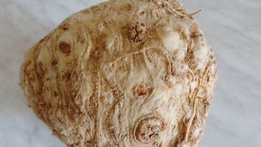 Приветствую всех на своём канале! Раньше я готовила блюда в основном из листьев и стебля сельдерея. Но последнее время открыла для себя корень сельдерея. Встречается корень сельдерея в магазинах и на рынках не очень часто. Цена крайне разнообразная. Буквально на днях в одном магазине цена была 120 р. за килограмм, а вчера удачно удалось приобрести в другом супермаркете по 59р. Корень довольно крупный, 3 штуки (не самых крупных) вышли на 1,6 килограмма. Выглядит корень сельдерея вот так: Для меня у корня сельдерея есть только 1 минус: его довольно тяжело чистить и разрезать...