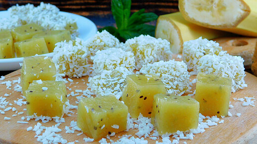 Сегодня сделаем полезный и абсолютно натуральный мармелад, из ингредиентов только фрукты и желатин. Итак, на столе мармелад из киви и банана. Он мягкий, но при этом хорошо держит форму. А вкус и аромат просто не передать словами. Время приготовления: 5 минут. Этапы приготовления: 1. Подготовить все необходимое. Бананы выбирать спелые, желательно с черными точками на кожуре, такие фрукты более сладкие и ароматные. Киви должны быть мягкие и не слишком кислые. От качества ингредиентов напрямую зависит вкус будущего мармелада...