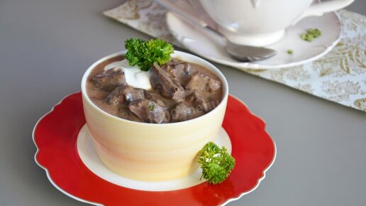Печень говяжья в сметане внесет разнообразие в ваше повседневное меню. К тому же, блюдо очень полезное, ведь печень содержит множество таких необходимых нашему организму микроэлементов. Этот рецепт простой. Готовится быстро, без особых хлопот. Благодаря сметанному соусу печень получается нежной и вкусной. Прекрасно подобранные специи дарят кушанью чудесный аромат. Но, если вы не любитель приправ, можно ограничиться солью и свежемолотым перцем. Калорийность 114 ккал/100 гр Ингредиенты (4 порции) · говяжья печень – 500 гр; · мука – 1 ст...