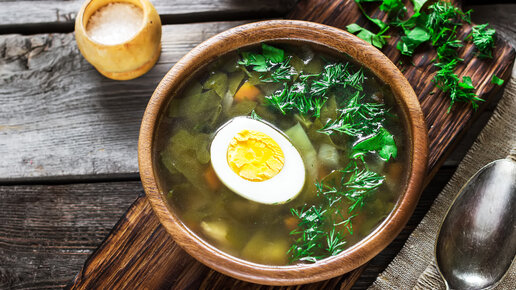 Данное блюдо традиционно является исконно русским супом. Готовят его в основном летом, когда есть свежий главный ингредиент - щавель. Щавелевый суп с яйцом является крайне удобным в приготовлении, может подаваться как горячим так и холодным. Идеально подойдет людям занимающимся спортом т.к. суп крайне низкокалорийный и включает в себя много полезный витамин. Приготовление освежающего летнего супа со щавелем и яйцом не займет у вас более часа, а пользы и освежающего вкуса от такого супа, будет на целый день...