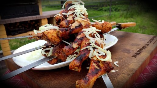 Как приготовить сочный куриный шашлык. Шашлык из курицы на мангале.