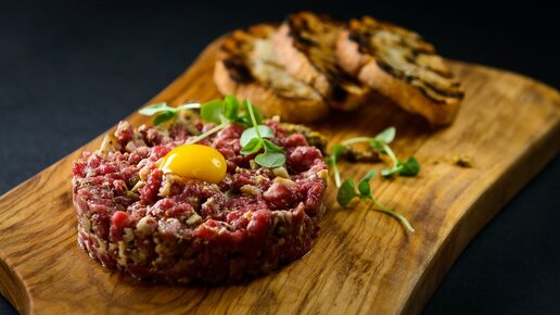 Тартар — популярная холодная закуска. Канонический рецепт предполагает, что сырое говяжье мясо рубят кубиками, формируют в «шайбу» и без всякой термической обработки подают со специями (луком, зеленью, горчицей) и сырым желтком. Из чего готовят тартар?